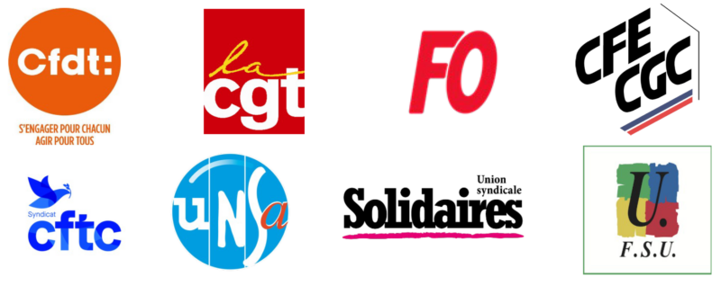 En France la CFDT, la CGT, FO, la CFE-CGC, la CFTC, l’UNSA, Solidaires et la FSU ont constitué une intersyndicale dès les premiers jours du mois de mars 2022.